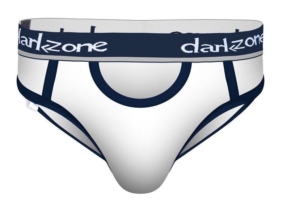 Белые мужские трусы-брифы с вырезом.