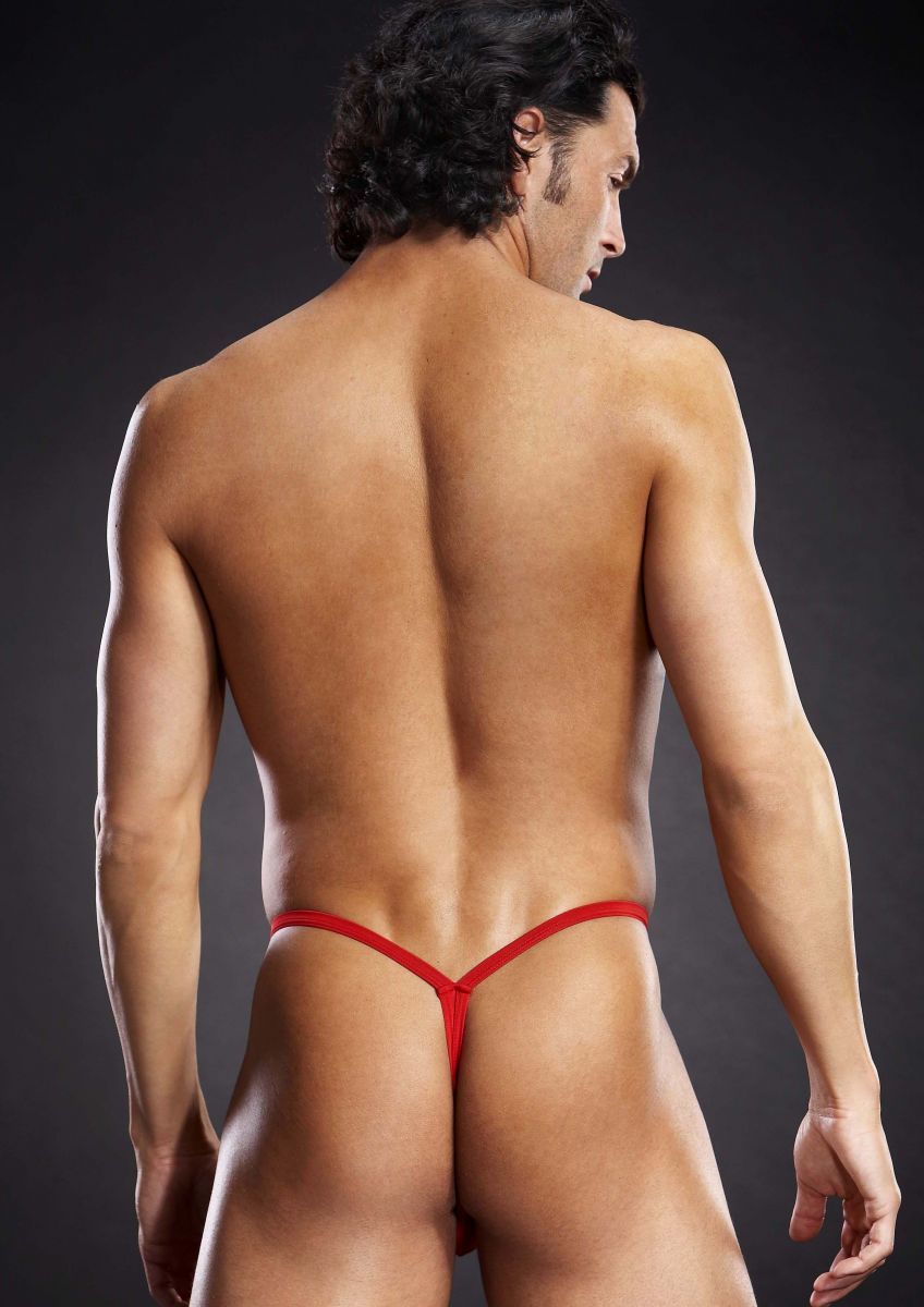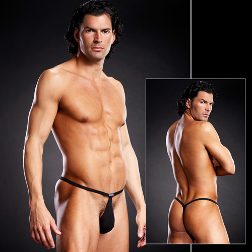 Открытые мужские стринги из микрофибры. Сзади стринги имеют форму буквы V, спереди - небольшой треугольник ткани.