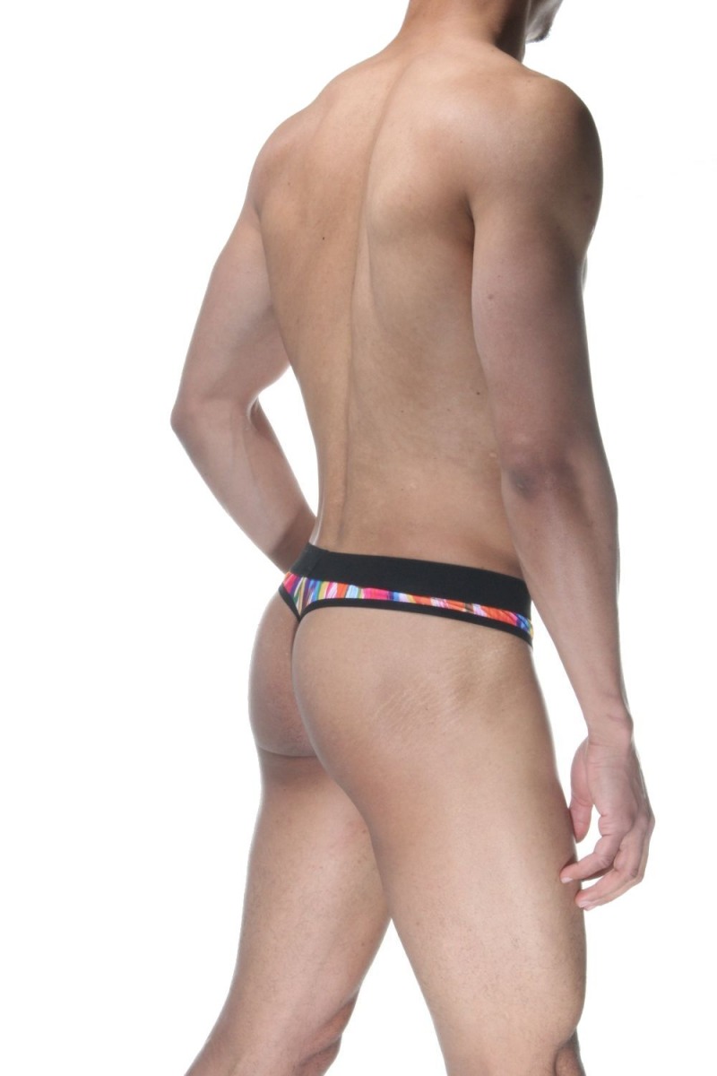 Мужские трусы-стринги с принтом в виде мазков краски.