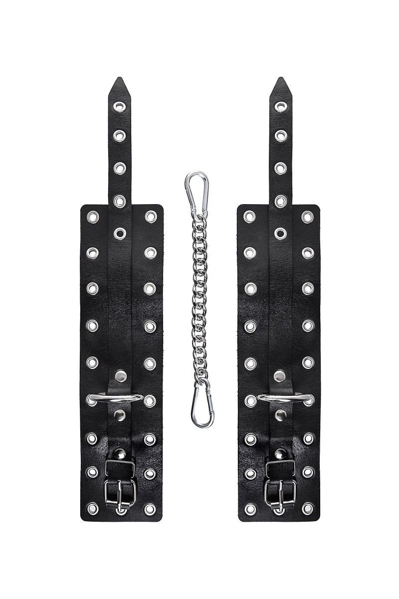 Эти однослойные кожаные оковы с контрастной строчкой красного цвета могут стать стильным аксессуаром, а могут послужить вашим целям по своему прямому назначению. Частичное обездвиживание и невозможность двигать руками или ногами дают вам полную власть над партнером – взрослые игры для взрослых. Наличие двух колец и карабинов, соединенных между собой кожаным ремешком, позволяет использовать изделие как раздельно – аксессуар-манжеты, так и как оковы для фиксации. К широким металлическим кольцам также можно присоединить и другие аксессуары при помощи карабинов. Благодаря универсальному размеру оковы могут использоваться и мужчинами, и женщинами. Размер легко регулируется с помощью металлических пряжек, органично вписывающихся в общий стиль. Длина манжет - 25 см, ширина - 6,5 см. Длина сцепки - 17 см.