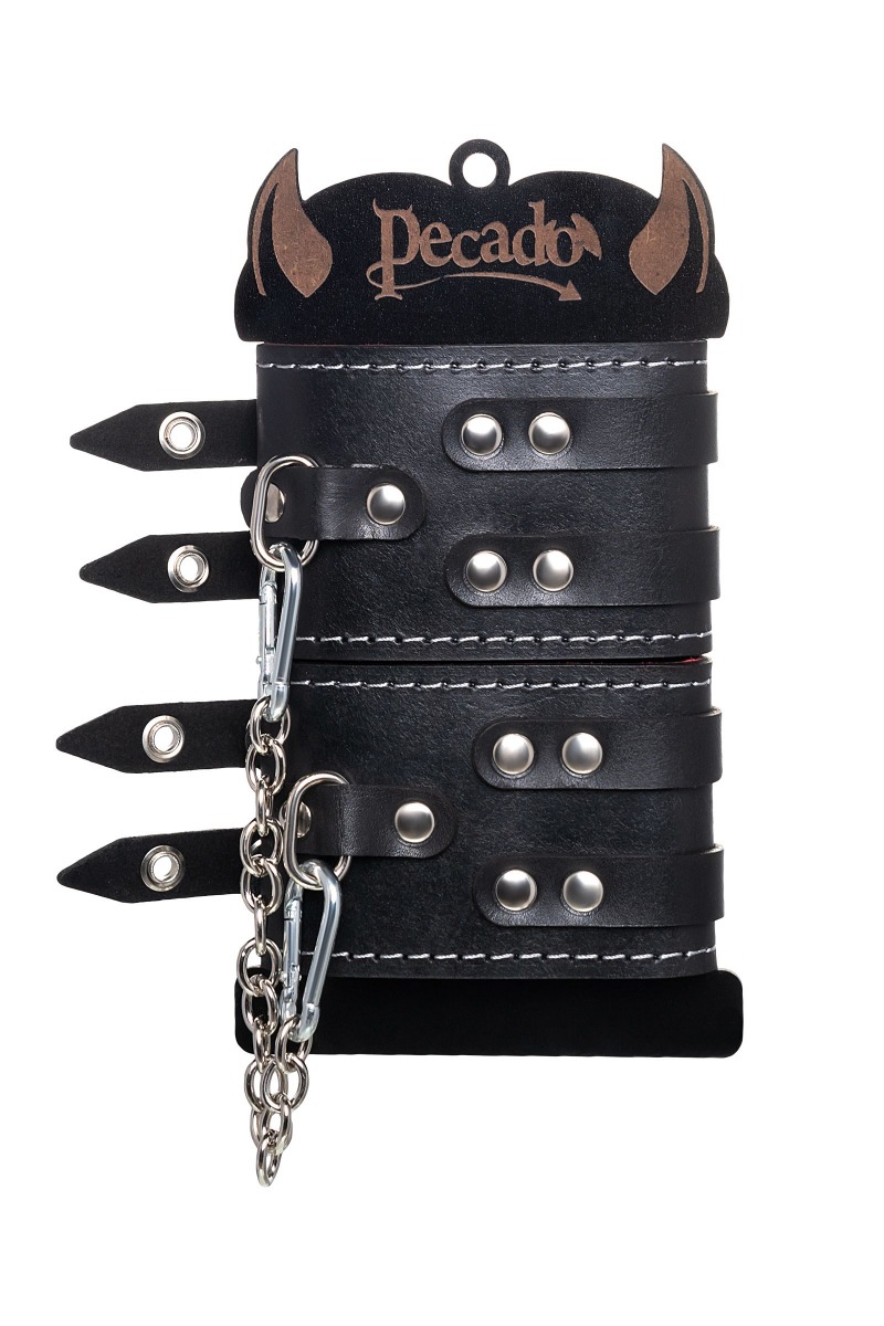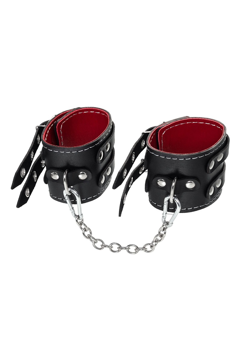 Эти кожаные оковы с двумя ремнями и красной подкладкой могут стать стильным аксессуаром, а могут послужить вашим целям по своему прямому назначению. Частичное обездвиживание и невозможность двигать руками или ногами дают вам полную власть над партнером – взрослые игры для взрослых. Наличие двух колец и карабинов, соединенных между собой металлической цепочкой, позволяет использовать изделие как раздельно – аксессуар-манжеты, так и как оковы для фиксации. К широким металлическим кольцам также можно присоединить и другие аксессуары при помощи карабинов. Благодаря универсальному размеру оковы могут использоваться и мужчинами, и женщинами. Размер легко регулируется с помощью металлических пряжек, органично вписывающихся в общий стиль. Длина манжет - 20 см, ширина - 7 см. Длина сцепки - 13 см.