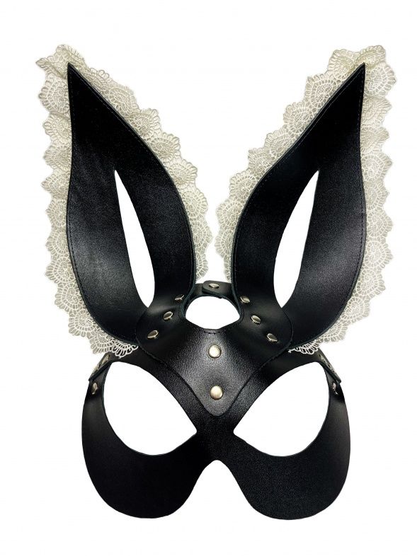 Супер-эффектная и сексуальная маска зайки. Выполнена маска из плотной черной кожи высокого качества, она отлично держит форму. Ушки декорированы красивым кружевом нежно-бежевого оттенка. Подойдет к любому типу лица, отлично подчеркнув глаза. Ушки длинные, стоячие. Фиксируется маска на металлическую пряжку сзади. Этот аксессуар станет главной фишкой вашего образа, добавит сексуальности и игривого настроения!