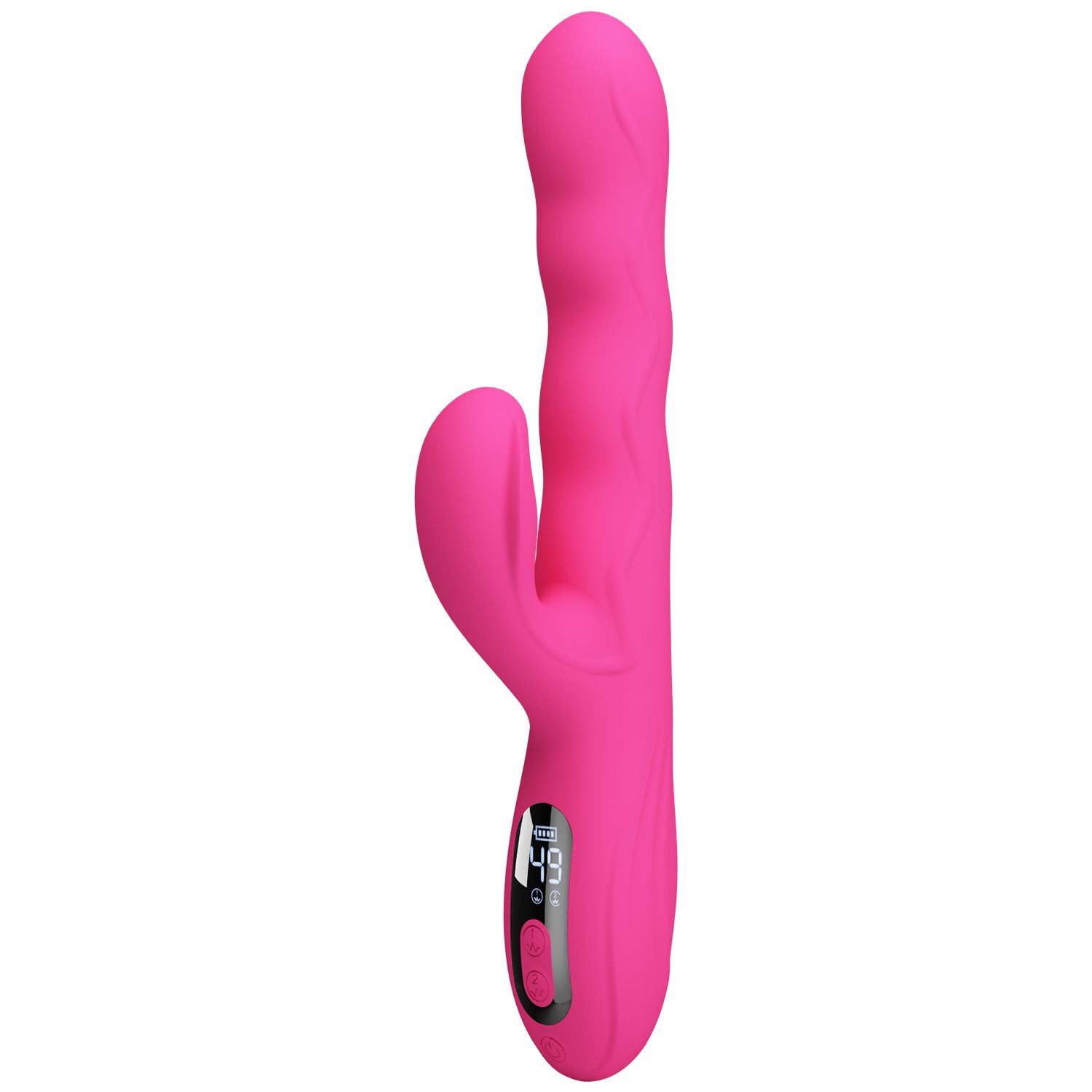 Розовый вибростимулятор-кролик с волновыми движениями Winters. 9 режимов вибрации, 4 режима волн. LED-дисплей. Рабочая длина - 14 см.